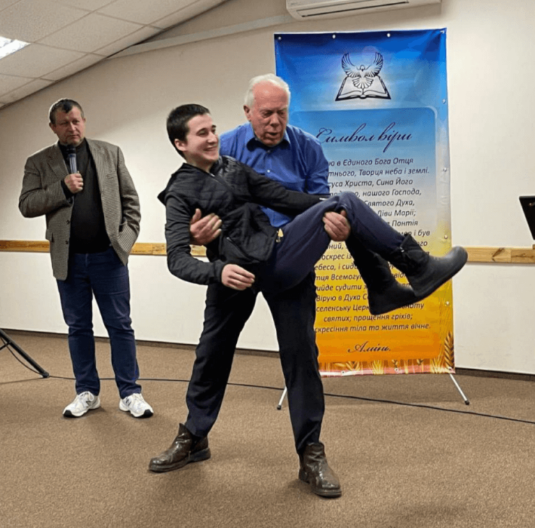 Despite the ongoing conflict, many people are still meeting faithfully. One man is in the middle of a real war zone in town with a ministry of about one hundred thirty attendees. He shares from the Bible, cares for the people, and has also built a structure like a pole barn to shield the congregation from the weather. Meanwhile, the Russians are shooting near that very area.